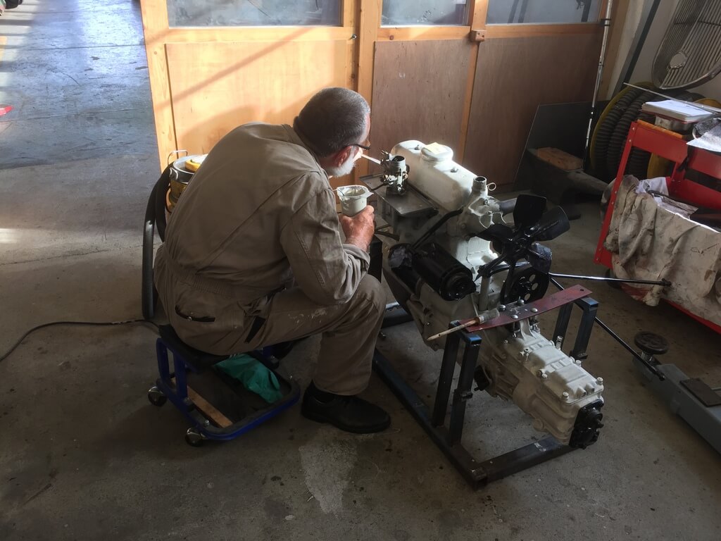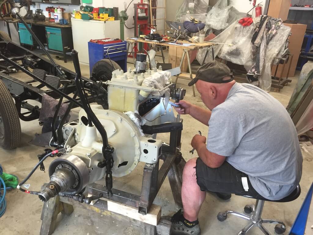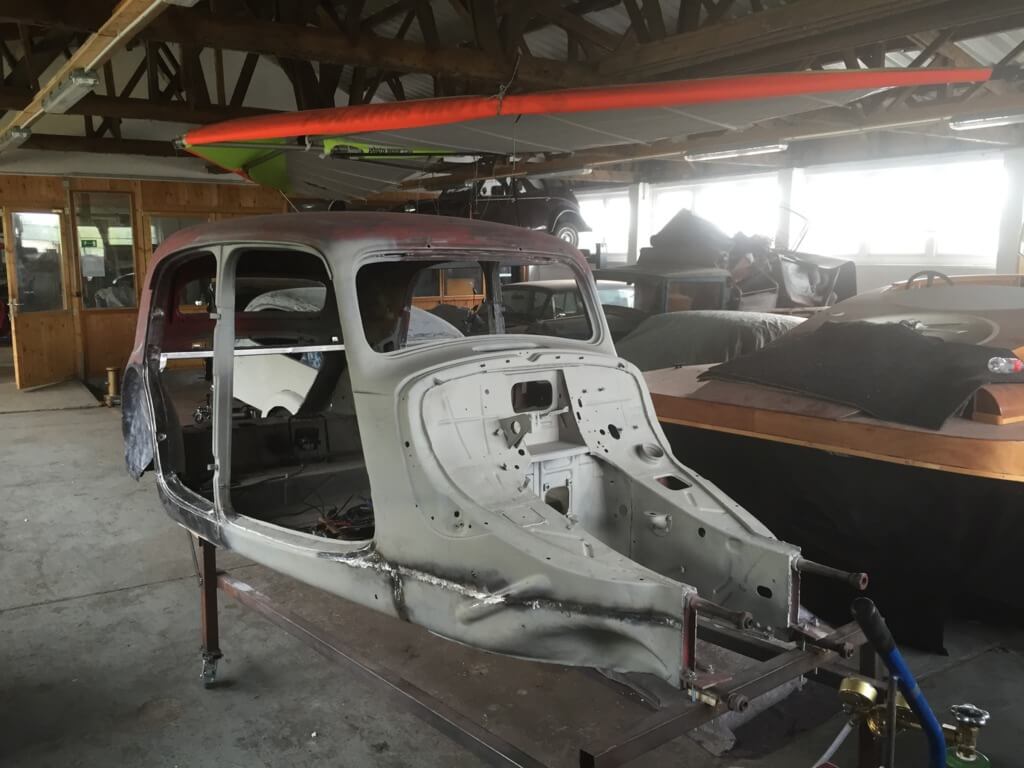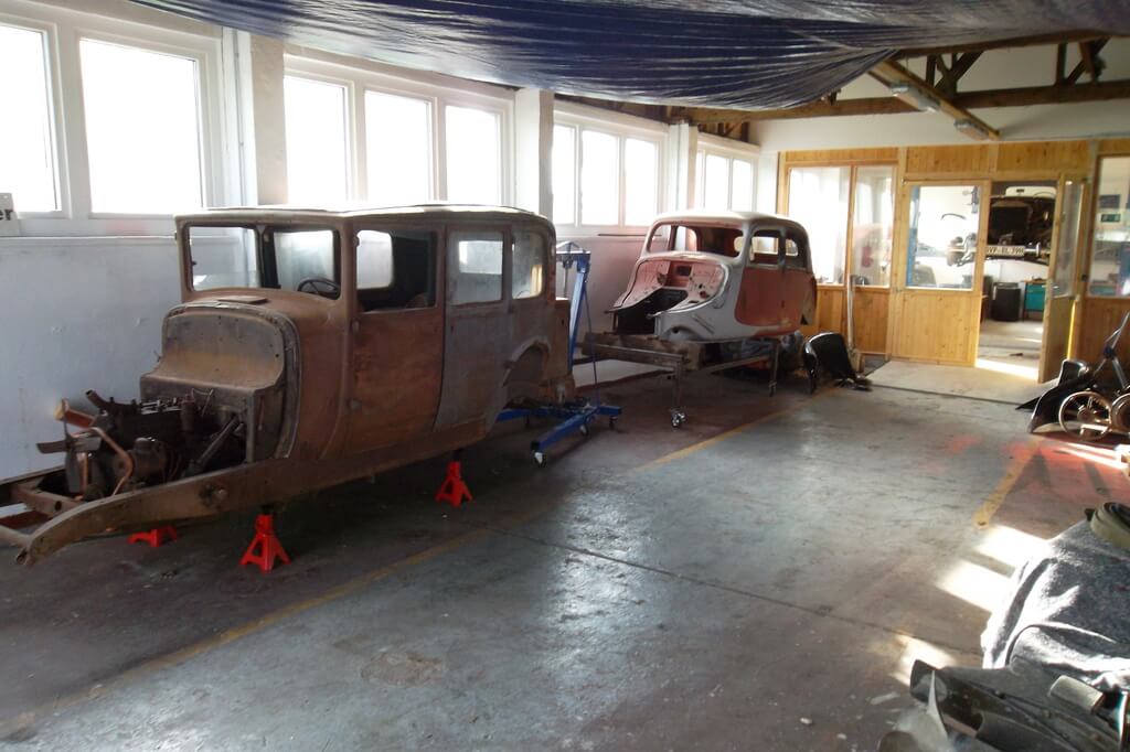 Wir arbeiten in einzelnen Teilbereichen, wie Polsterung oder Stellmacherei mit lokalen Spezialisten zusammen. Blecharbeiten, Nieten, Schweißen, Löten, Elektrik und Mechanikbearbeitung erfolgen in unserer Werkstatt.